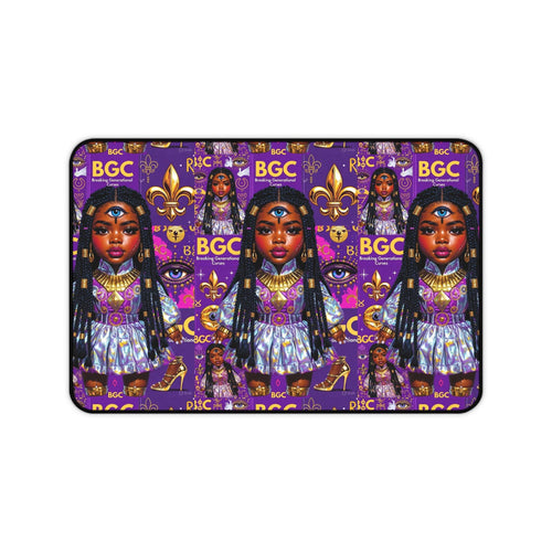 Afro Girl Pattern Desk Mat | Purple Fleur-de-lis Gaming Mousepad